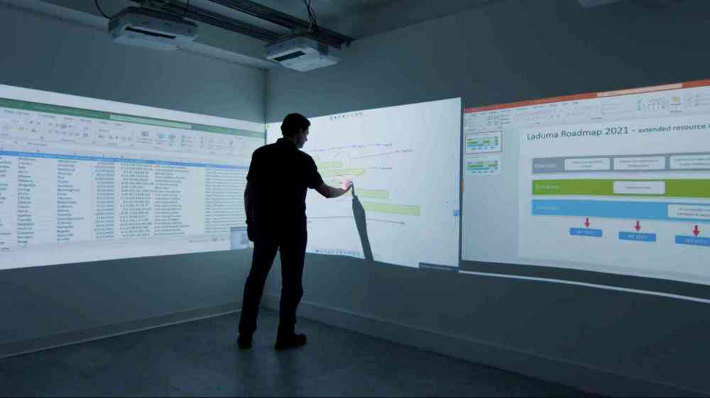 Laduma whiteboard sessions provide a blank canvas for real-time synchronised collaboration across infinite digital space. Project interactive whiteboard sessions on to meeting room walls, or access them remotely on any laptop or tablet device.